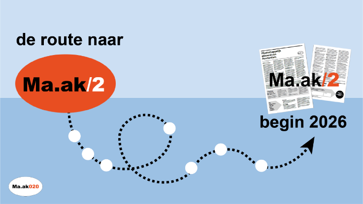 Na de Ma.ak-bijeenkomsten op 22 mei, 12 juni en 20 juni is alle input voor Ma.ak/2 bij elkaar gebracht. Die input wordt in de maanden september-december gecomprimeerd tot een akkoord op hoofdlijnen. Daar wordt al doende feedback op gevraagd uit het netwerk. Aan een belangrijk onderdeel wordt continu door een werkgroepje doorgewerkt: hoe organiseren we het eigenaarschap, commitment en draagvlak bij Ma.ak/2 in de stad. Vanaf januari 2026 volgt een onderteken-campagne. Ondertussen worden de actiepunten uit het akkoord zo veel mogelijk uitgewerkt tot een uitvoerbaar plan. Direct na de gemeenteraadsverkiezingen in maart 2026 richten we ons met het nieuwe akkoord op de nieuwe gemeenteraad, met als doel een breed door de raad gedragen democratiseringsagenda.