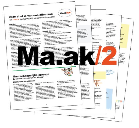 Ma.ak/2 heeft als doel Amsterdammers zo goed mogelijk te laten bijdragen aan onze stad: een blijvend eerlijker, inclusiever, gezonder, innovatiever, toekomstbestendiger en initiatiefrijker Amsterdam. Draagvlak voor dit akkoord begint bij jou en bij alle andere Actieve Amsterdammers die zich aangesproken voelen. In het vervolg richten we ons op alle windrichtingen van de stad en op de gemeenteraad. Hoe en wanneer vind je in dit akkoord. Voor meer achtergrond zie het voortraject van Ma.ak/2.